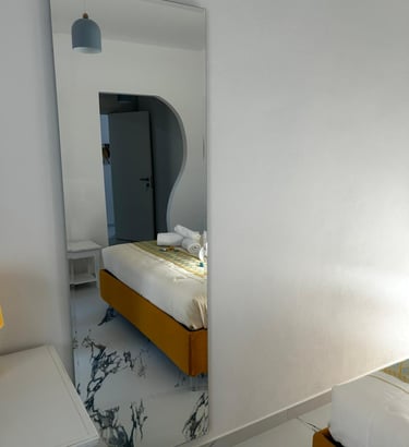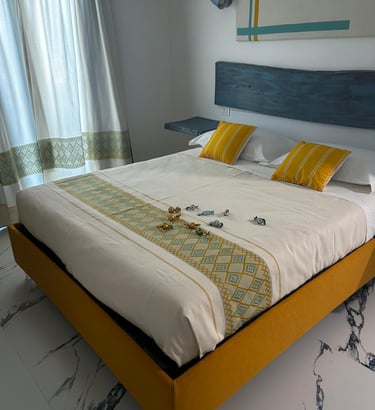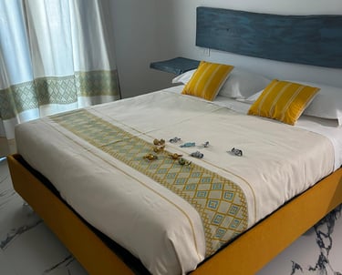 Scopri il massimo comfort e design con questo esclusivo letto matrimoniale moderno. Realizzato con una raffinata struttura imbottita in elegante color senape, questo letto dona personalità e calore a qualsiasi camera da letto. Il completo biancheria, in tessuto di alta qualità, è impreziosito da sofisticati dettagli geometrici, abbinati a cuscini coordinati che assicurano stile e benessere in ogni momento di relax. Disponibile in dimensioni standard (160x200 cm), è perfetto per chi cerca funzionalità senza rinunciare all’eleganza. La testiera è particolarmente confortevole per leggere o riposare, mentre i materiali selezionati garantiscono durata e resistenza. Pronto per trasformare il tuo spazio notte in un’oasi di modernità e comfort.